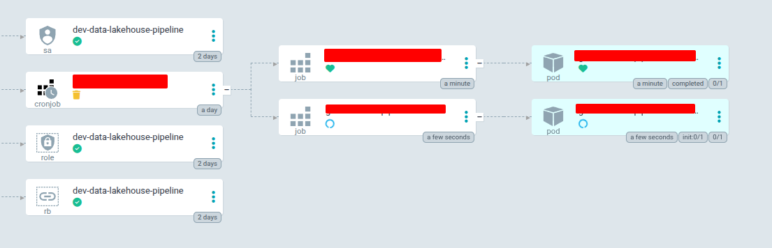kubectl config use-context data-lakehouse-contextNow try again and you an use command get for specific workload in namespace data-lakehouse, like pod, jobs and cronjobs. In the situation, you query another stuff like configmap or secrets, you will receive the failure