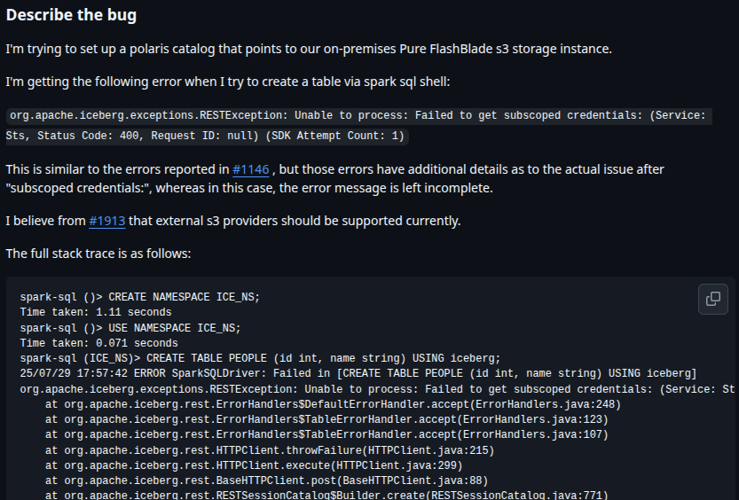 - Documentation and Hidden Nuances: The documentation for tools like Polaris and Iceberg can be extensive and complex. There are often many hidden details and subtle techniques required to get these tools working optimally, demanding a high level of technical expertise and significant effort to explore and implement successfully. It’s not always easy for a first-time implementer.