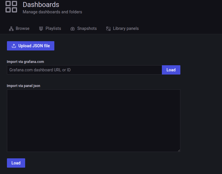 To import the dashboard, you can go to the Grafana via browser to access your self-hosted in Kubernetes, login and go to Dashboards > New > Import.