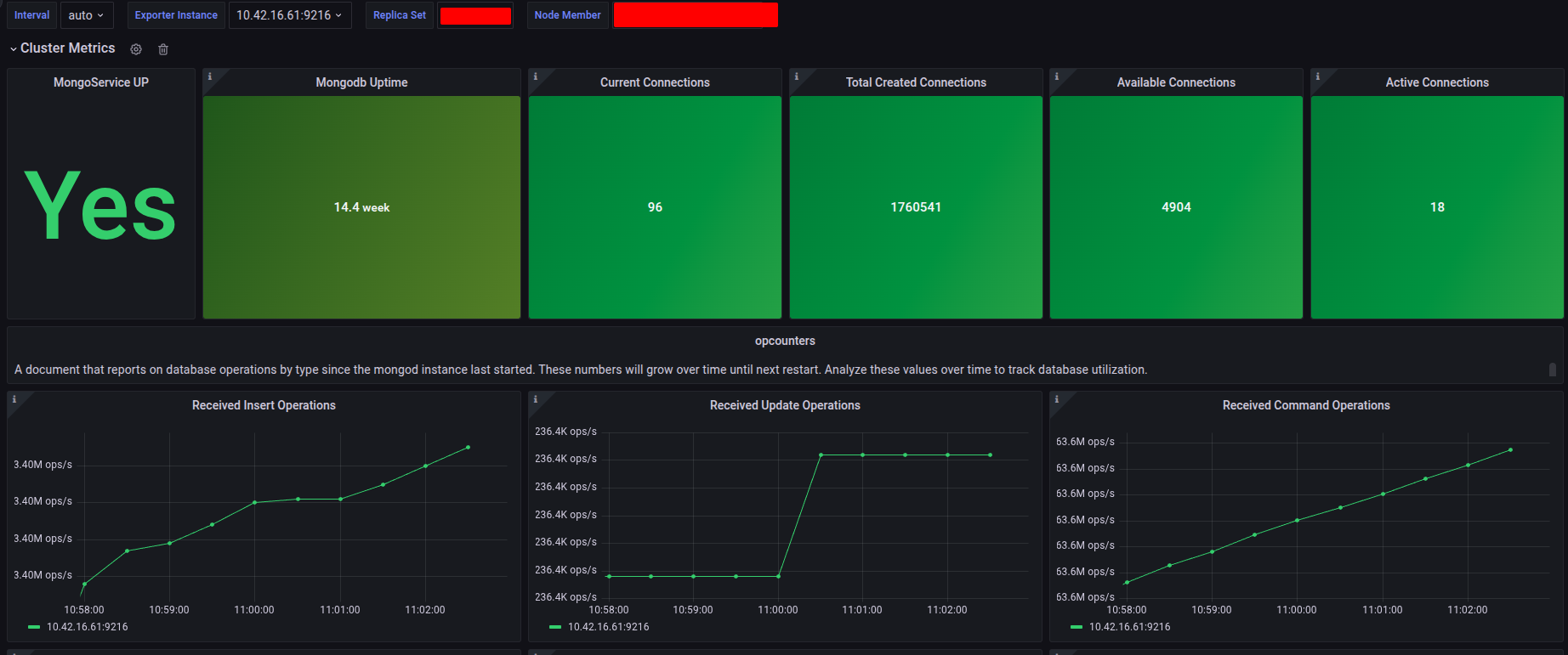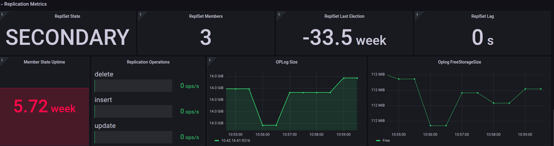 With MongoDB, I define it original and try to add also replicaset into dashboard, please check this one at MongoDB Metrics for Collection and ReplicaSet and import them if you want