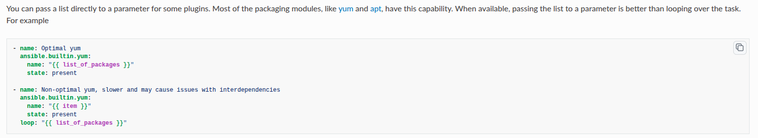 You can double-check this configuration in your collection, or web version at GitHub - autobase/automation/roles/packages/tasks/extensions.yml and try disable the loop and instead pass the package into name parameter of ansible.builtin.package task. Here is what i editing