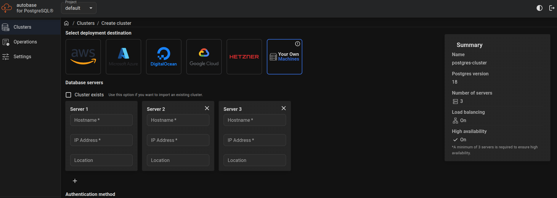 Minimum Node Count: An HA PostgreSQL cluster should include at least two nodes (one primary and one replica). However, it is highly recommended that you set up a minimum of three nodes for any production-ready environment. A three-node cluster is essential for ensuring the integrity of the Etcd clusterβs Raft consensus, which guarantees reliable failover.