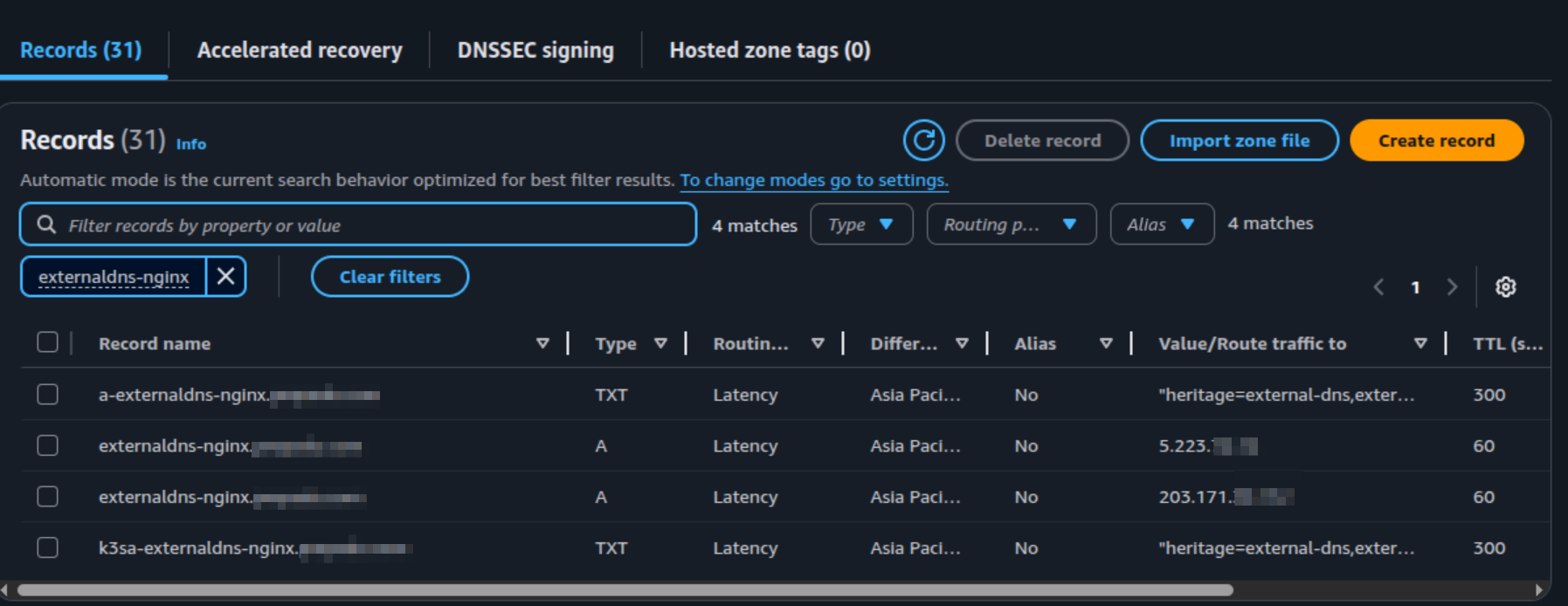 When I try to perform and take the experiment with ExternalDNS and also with Route53, I have few insight for this oscassion, especially with impressive with Latency Based Routing Strategy of Route53